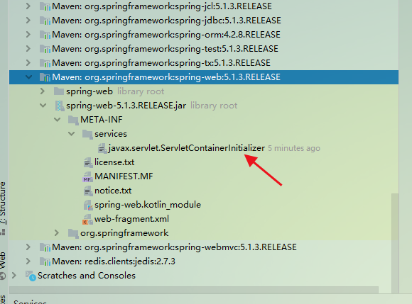 Servlet 3.0引入的接口,用于在web应用启动时动态添加ServletFilterListenerServlet 3.0 +的容器将自动扫描类路径,就是当 Servlet 容器启动的时候会根据 SPI规范加载META-INF/services/javax.servlet.ServletContainerInitializer文件路径中存放的实现该接口的所有类。
